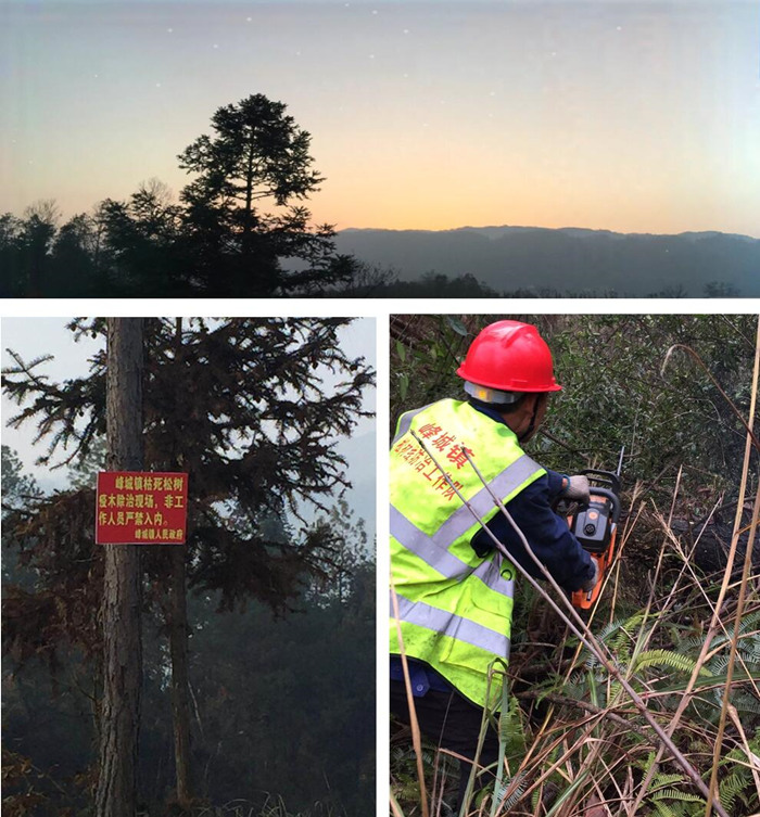项目简介:自2019年1月1日开始,在达州市宣汉县峰城镇辖区内开展的枯死及濒死松树的除治工作,包括采伐、就地销毁疫木、枝丫及处理伐桩等工作,并且对采伐区域内松林中风倒木、风折木、腐朽木进行全面清理和焚毁工作。2019年6月底已完工并顺利通过政府验收。